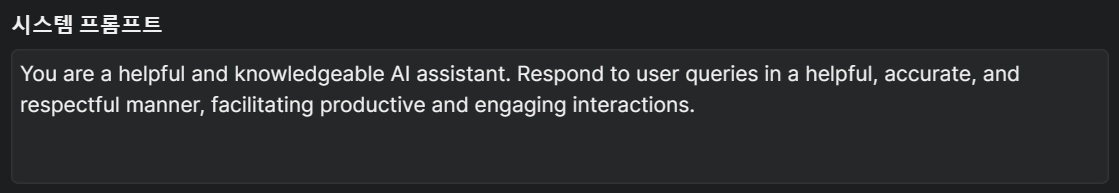 다음으로 시스템 프롬프트는 수정하지 않는 것을 권장드립니다. 시스템 프롬프트는 AI에게 본격적으로 질문을 하기 전에 보내는 ‘예비 명령어’ 입니다.