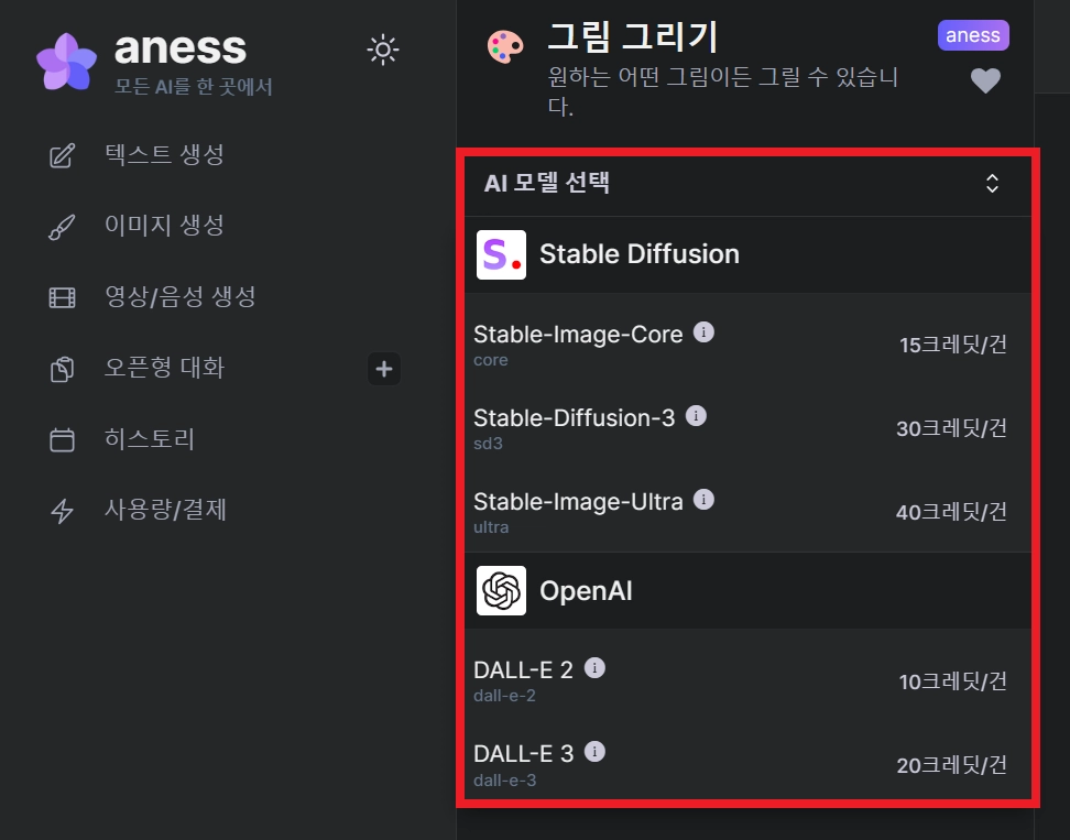 원하는 카테고리가 없을 경우 info@aness.ai로 카테고리 추가를 문의해주세요.