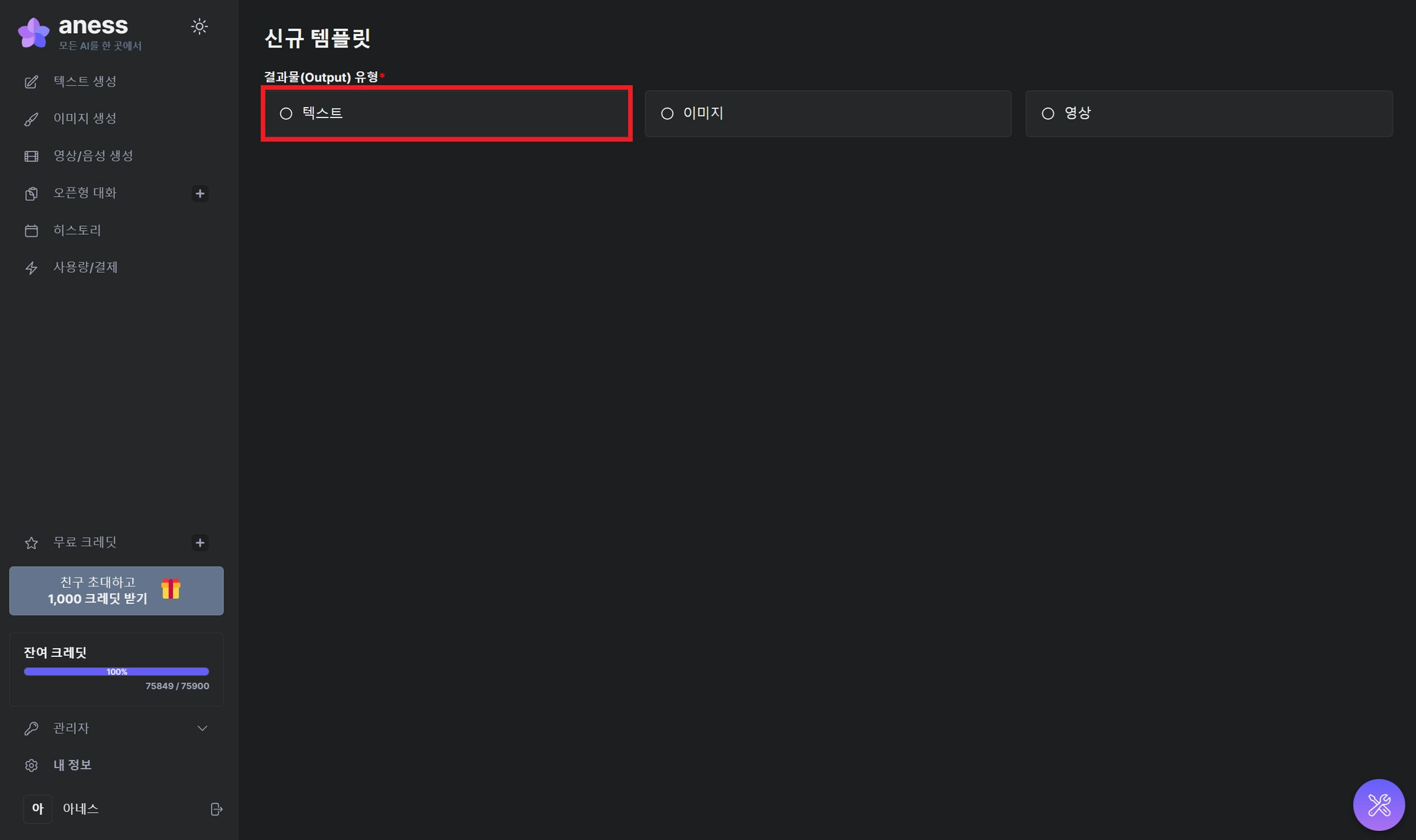 현재는 ‘텍스트’형 결과물을 만드는 템플릿만 생성할 수 있습니다.