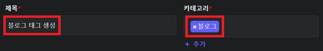 제목 입력란에 원하는 제목을 입력하고, 카테고리 입력란에서 원하는 카테고리를 선택합니다.