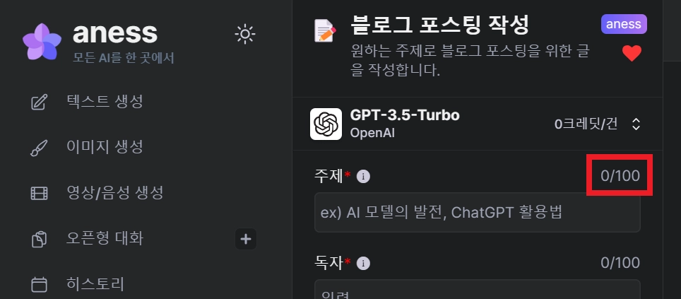 최대 글자 수 : 해당 필드에 입력 가능한 내용의 길이를 제한할 수 있습니다.