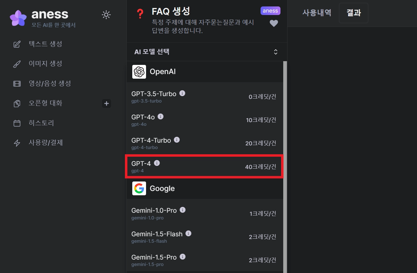 예를 들어, 내가 만든 템플릿에서 사용자가 [GPT-4] 모델을 사용해서 결과물을 3회 생성했다면