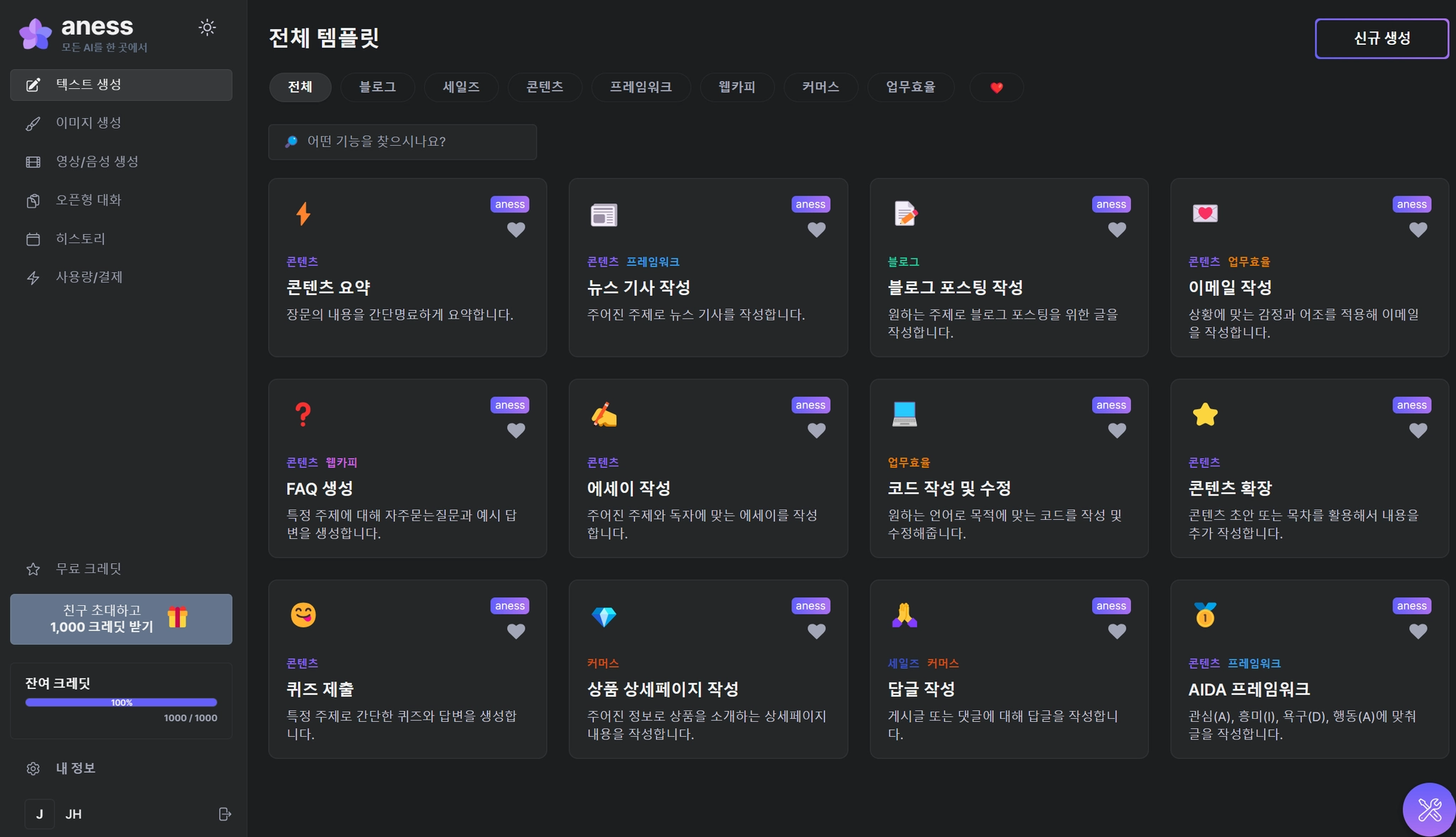 템플릿을 사용할 때 사용자가 지정한 AI모델별로 정해진 크레딧이 소진됩니다.
