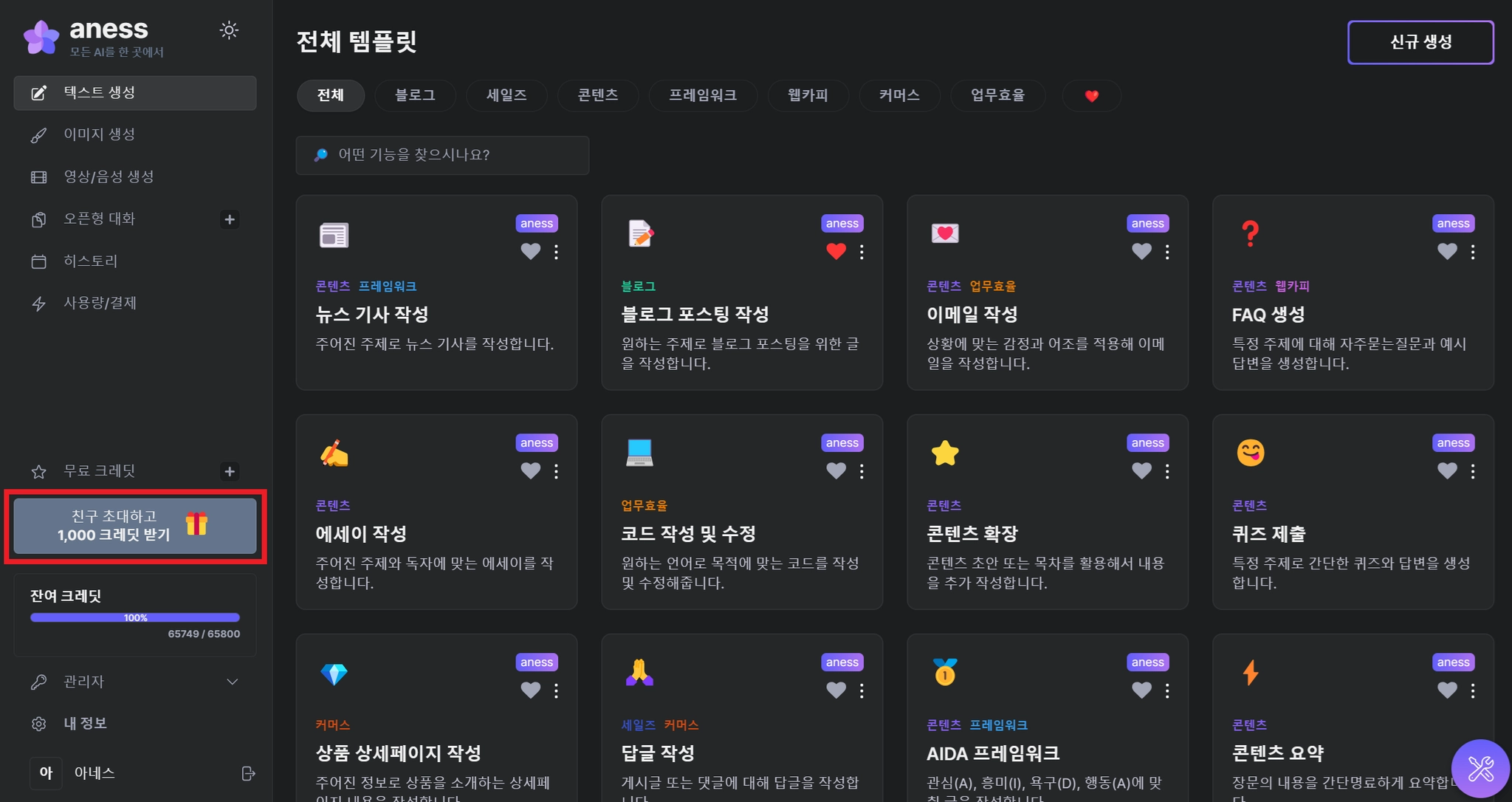 초대받은 친구가 가입하면 초대자와 친구 모두에게 각각 1,000 크레딧이 지급됩니다.